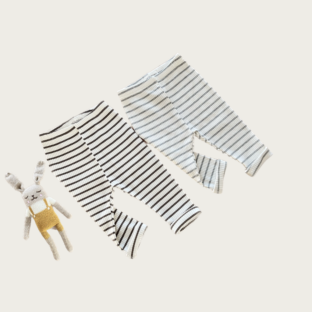 Du suchst nach einer weichen und warmen Leggings für dein Kind? Diese weiche Leggings haben wir in den tollen Farben grau-weiß und braun-weiß für dich. Diese lassen sich super zu unserem Chunky Pulli kombinieren.